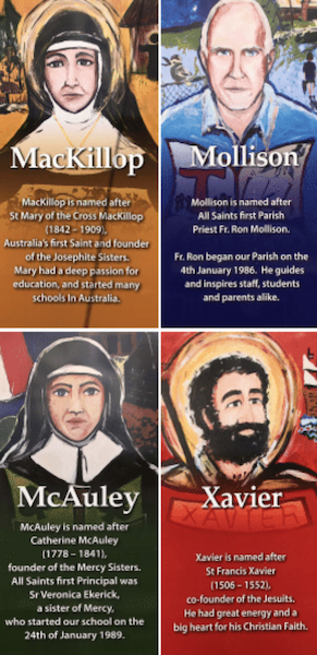 All Saints Parish School is under the patronage of 4 very special people. They guide and guard our Walk in Love.