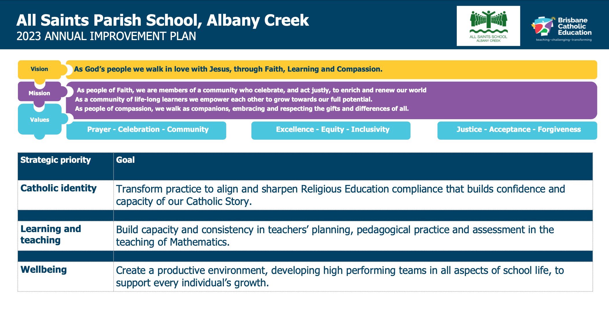 To access the current school annual report for All Saints Parish Primary School, please visit the Brisbane Catholic Education school annual reports page.